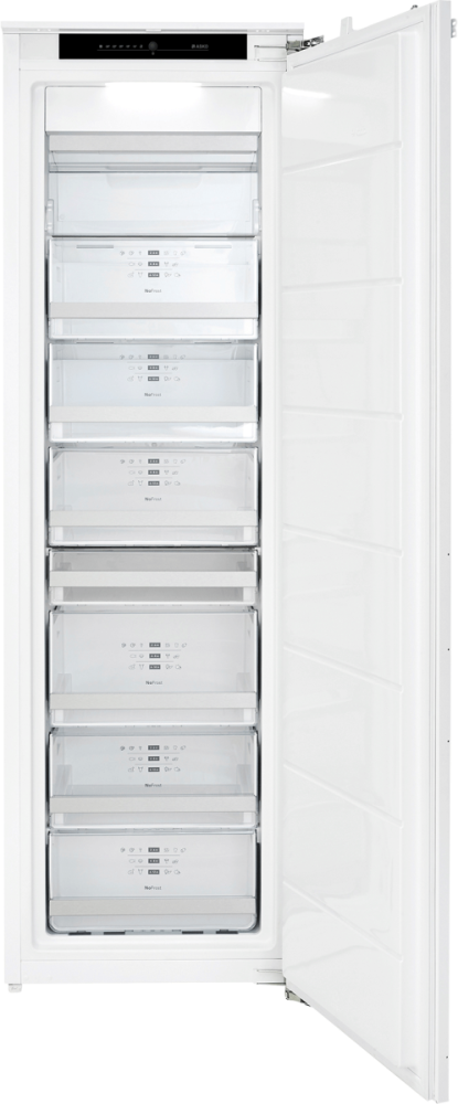 Встраиваемый морозильный шкаф с большим объемом 212 л и перенавешиваемой дверью. Удобное электронное управление позволяет устанавливать температуру вручную, а система No Frost не только устраняет необходимость в разморозке, но также экономит электроэнергию.