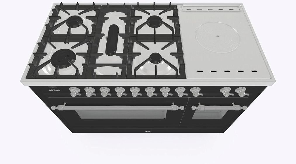 • Тип конфорок: 5 газовых, чугунная тарелка «Coupe de Feu» с кольцами