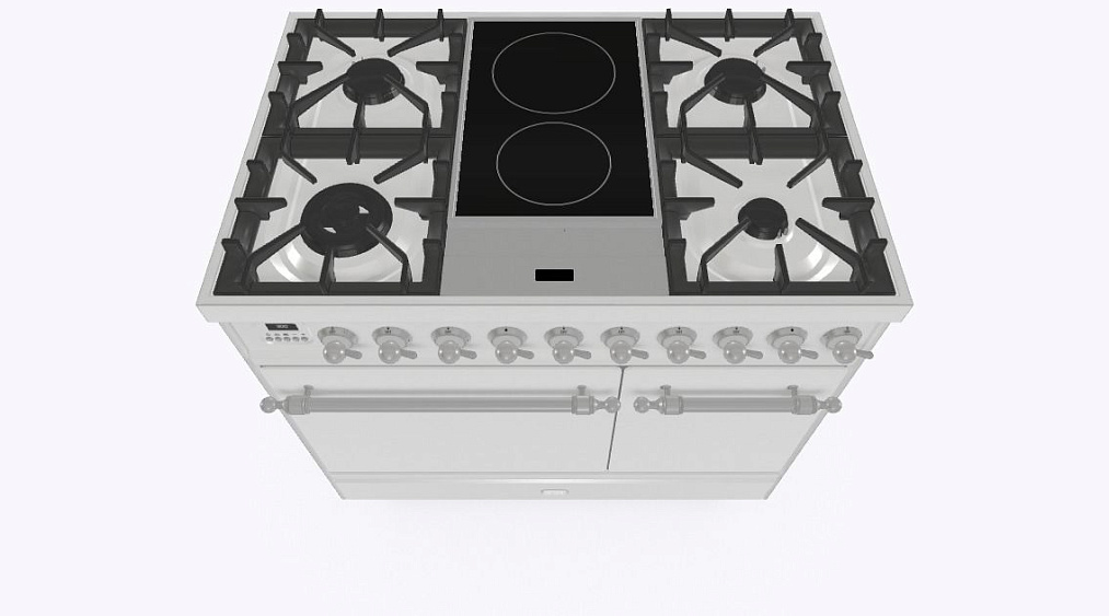 4 газовых, 2 индукционные варочные зоны, двухконторная конфорка DUAL