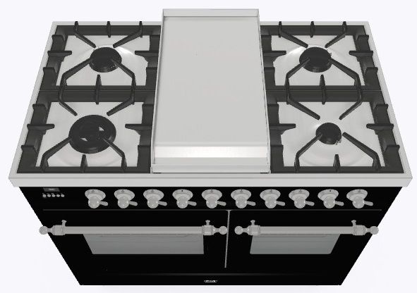 • Тип конфорок: 4 газовые конфорки, Dual конфорка, жарочная поверхность Fry Top