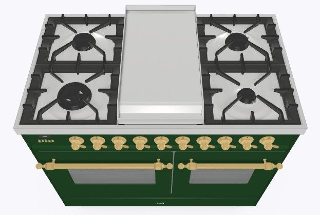 • Тип конфорок: 4 газовые конфорки, Dual конфорка, жарочная поверхность Fry Top