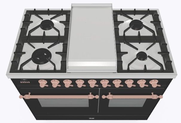 • Тип конфорок: 4 газовые конфорки, Dual конфорка, жарочная поверхность Fry Top