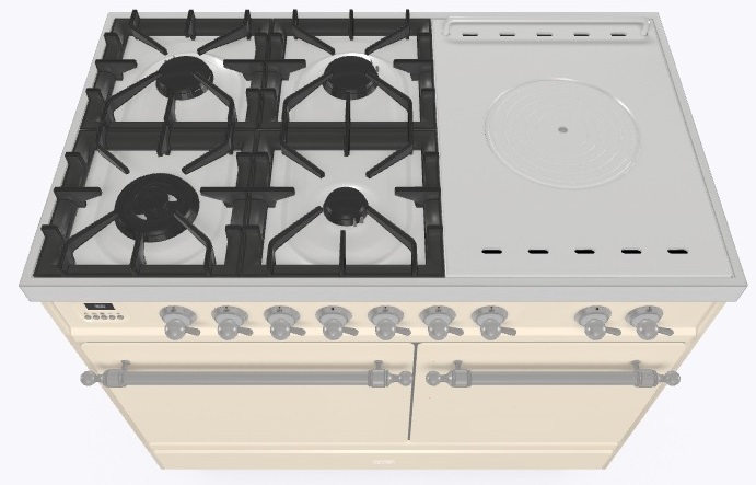 4 газовые конфорки, Dual конфорка, жарочная поверхность Coup de Feu
