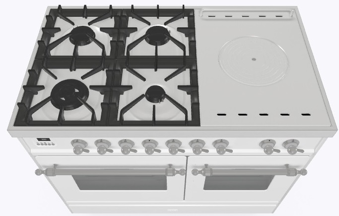 • Тип конфорок: 4 газовые конфорки, WOK конфорка, жарочная поверхность Coup de Feu