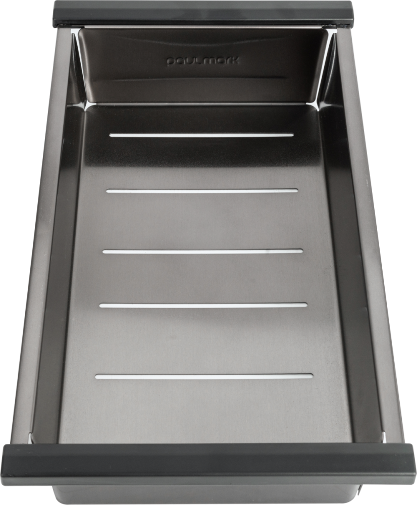 Коландеры Paulmark изготовлены из нержавеющей стали ASIS 304, устойчивы к перепадам температур и к нагрузке. Используются для мытья и размораживания продуктов. Устанавливаются на бортики мойки и в специальные ступеньки моек серии PRO. Размер отверстий в донной части не позволит выпасть даже мелким ягодам и в то же время не препятствует свободному стоку воды. Глубина коландера - 6 см.