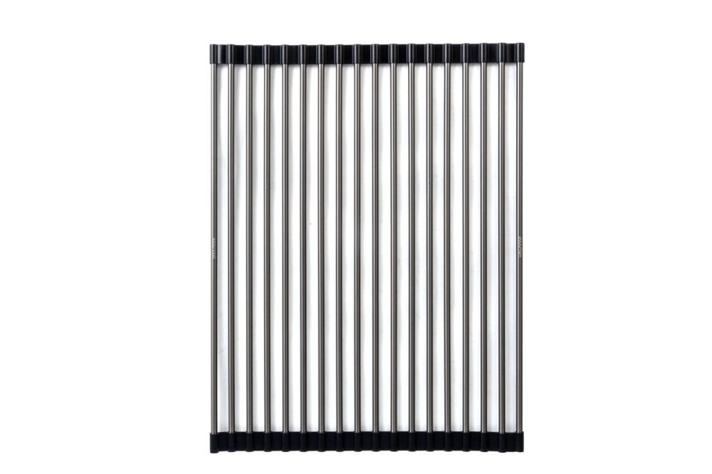 Благодаря двусторонним силиконовым наконечникам, ролл-мат защищает поверхность и может быть размещен на столешнице, крыле мойки или в специальных направляющих чаши кухонной мойки.
