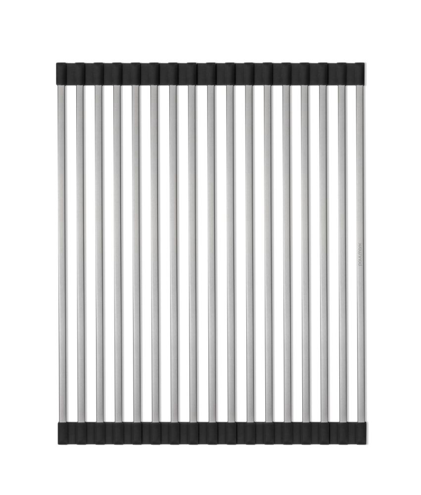 Он может быть использован в качестве подставки для горячей посуды, сушилка для овощей и фруктов или коврик для разморозки продуктов. Благодаря двусторонним силиконовым наконечникам, ролл-мат защищает поверхность и может быть размещен на столешнице, крыле мойки или в специальных направляющих чаши кухонной мойки.