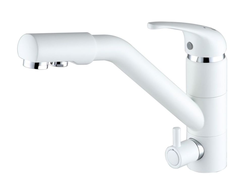 предусматривает поступление фильтрованной воды, которая не смешивается с водопроводной. Питьевая вода подается через отдельные трубку и аэратор, а для регулирования питьевой воды предусмотрена отдельная ручка.